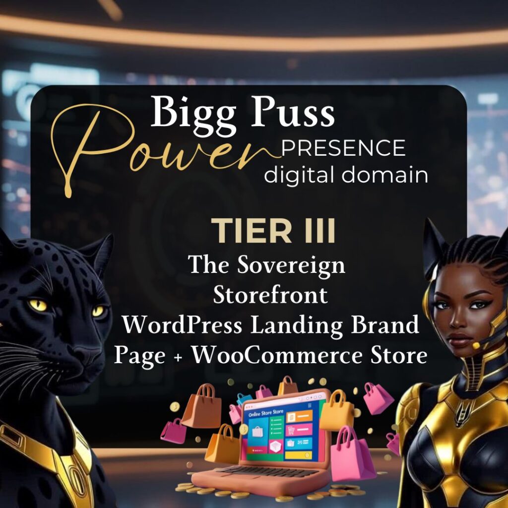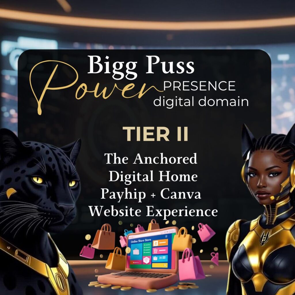 Step confidently into the digital realm with The Bigg Puss Power Presence: Digital Domain Offer — a limited media service designed for creative entrepreneurs ready to establish ownership and anchor their presence in the global digital market.